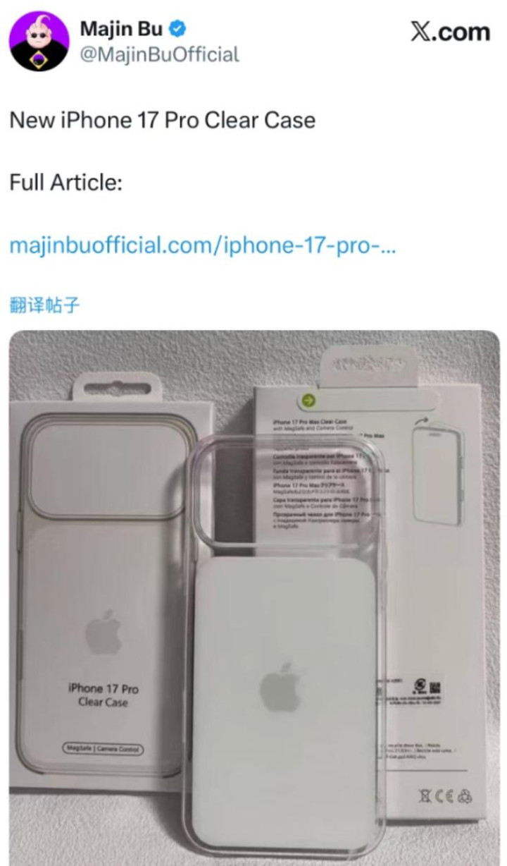 目前海外博主 Majin Bu 又分享了一款还未发布的 iPhone 17 系列手机壳。